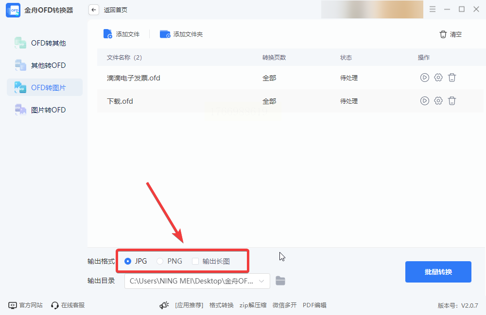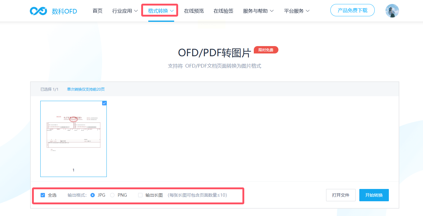 1. 选择正规平台(如工信部备案的在线转换工具),点击【OFD转图片】功能入口;