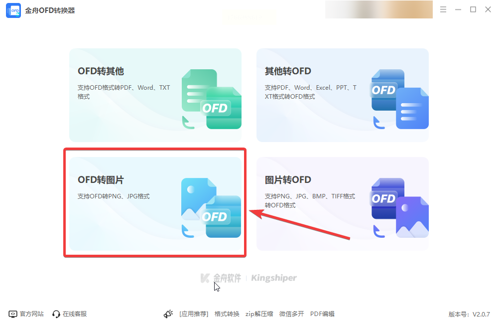 1. 从官网下载安装金舟OFD转换器(避免第三方渠道),双击启动后在功能区选择【OFD转图片】模块;