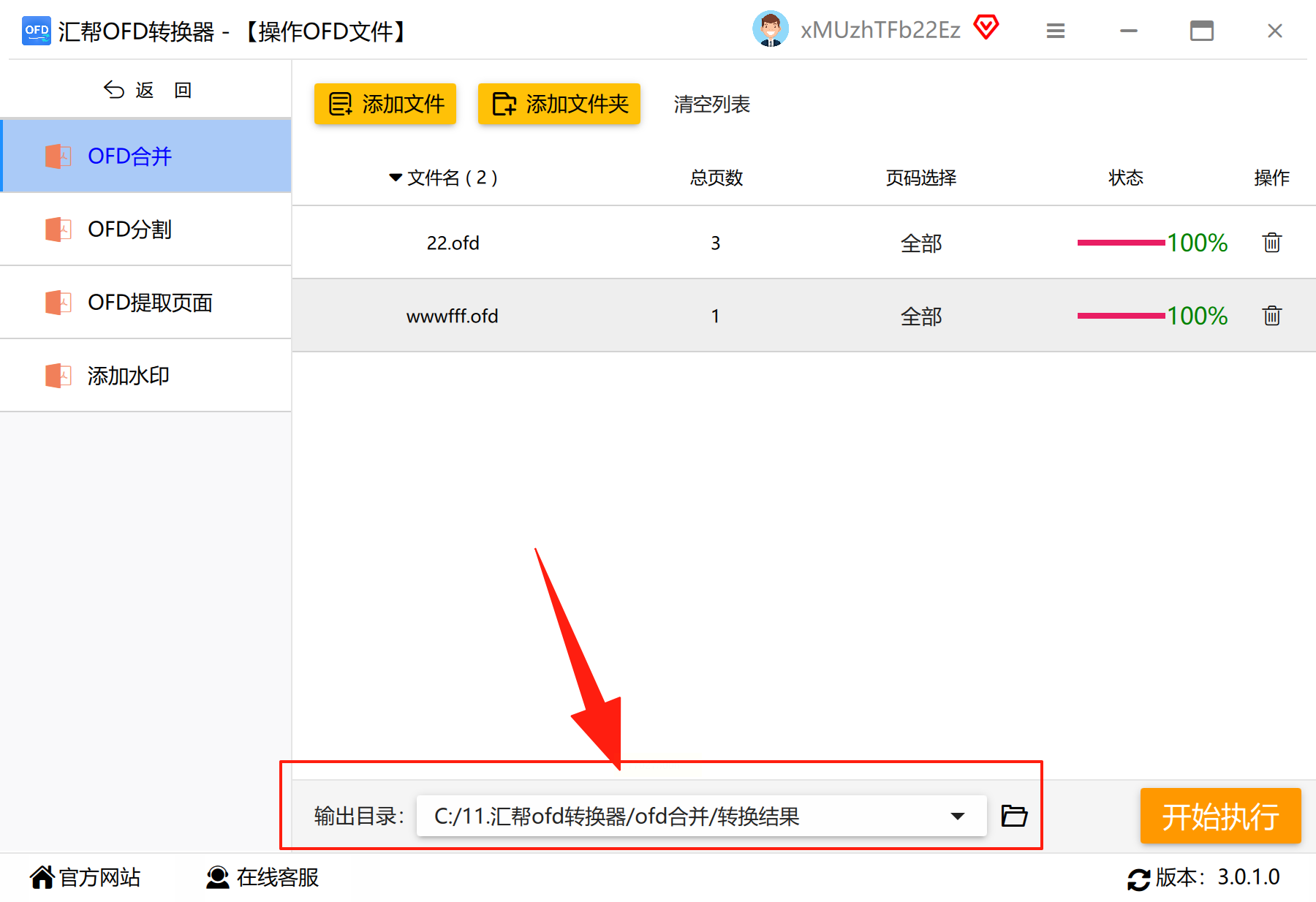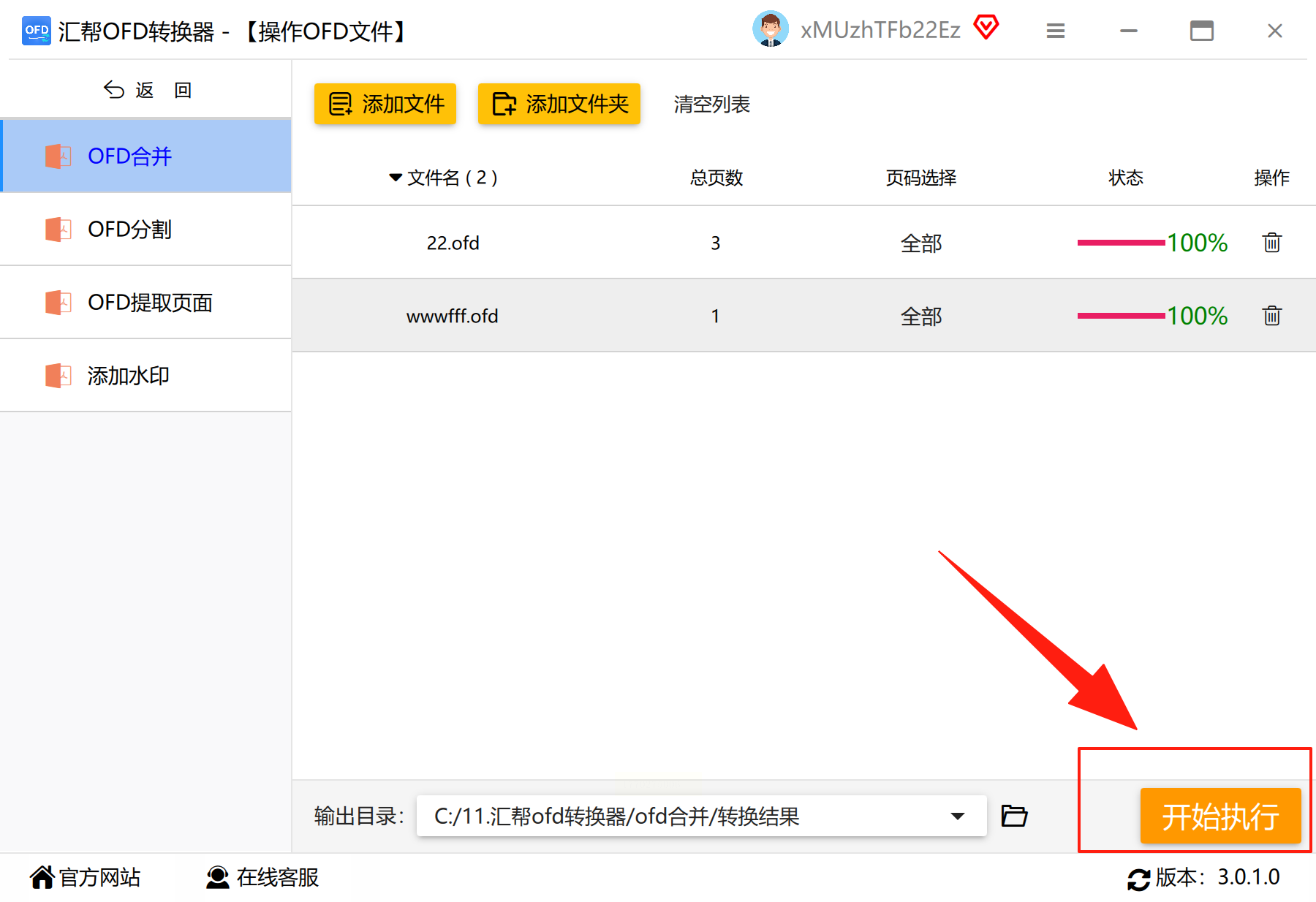 3. 若需合并多个文件,重复上传所有需要处理的OFD文档;