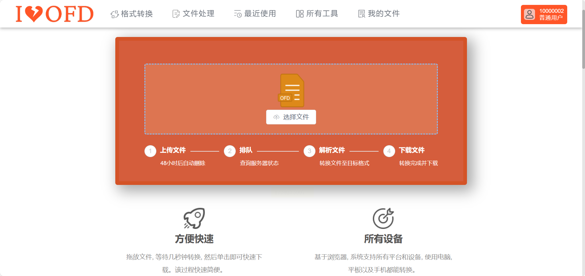 2. 点击“上传文件”按钮,选择本地OFD文件(单个文件≤100MB);