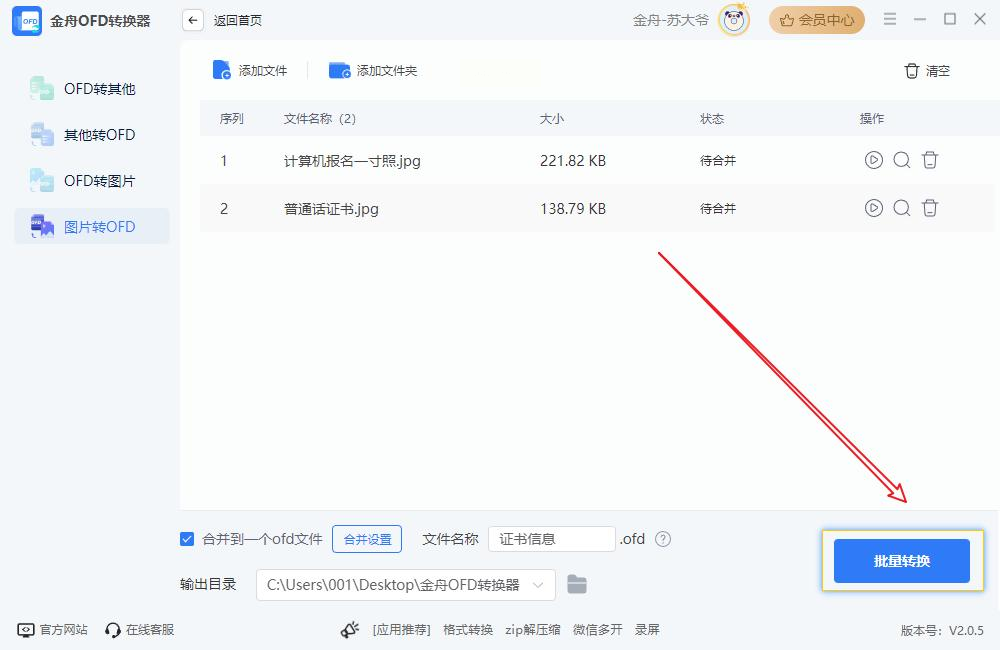选好图片后,记得看看下方“输出目录”那里,点“浏览”按钮选个你容易找到的文件夹,比如桌面新建个“OFD转换文件”文件夹,这样找起来方便。
