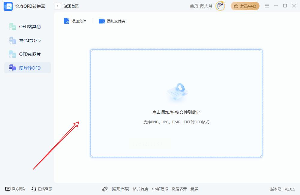 左边菜单栏里找找“图片转OFD”,点一下。然后看到“添加图片”按钮,点它就能从电脑里选你要转的图片了。JPG、PNG、BMP这些常见格式都支持,多选的话可以按住Ctrl键,或者直接把整个文件夹拖进去。