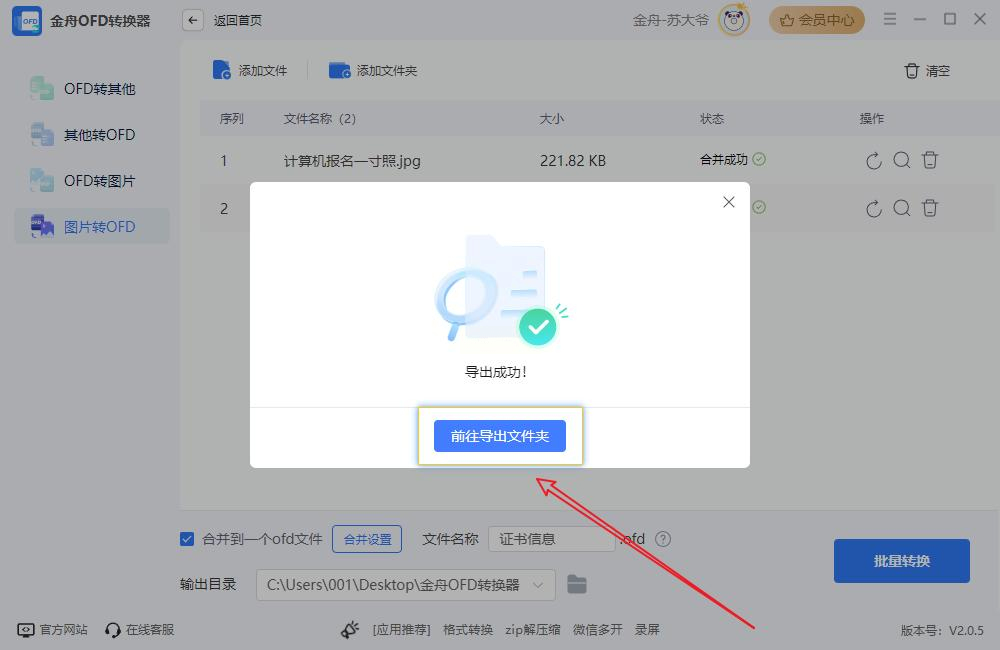 转换完会弹出提示,点“前往导出文件夹”就能看到生成的OFD文件了,右键还能重命名或者直接用阅读器打开检查效果。