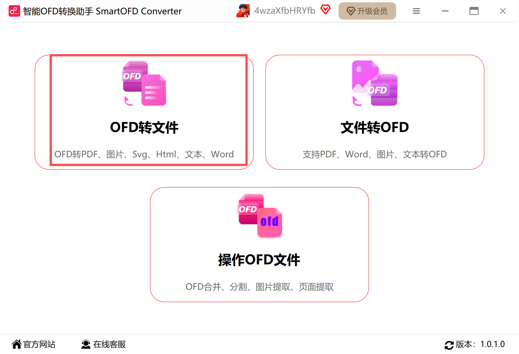 步骤一:运行软件后,你会看到明确的功能分类。直接选择“OFD转PDF”或类似的入口,进入核心操作区。
