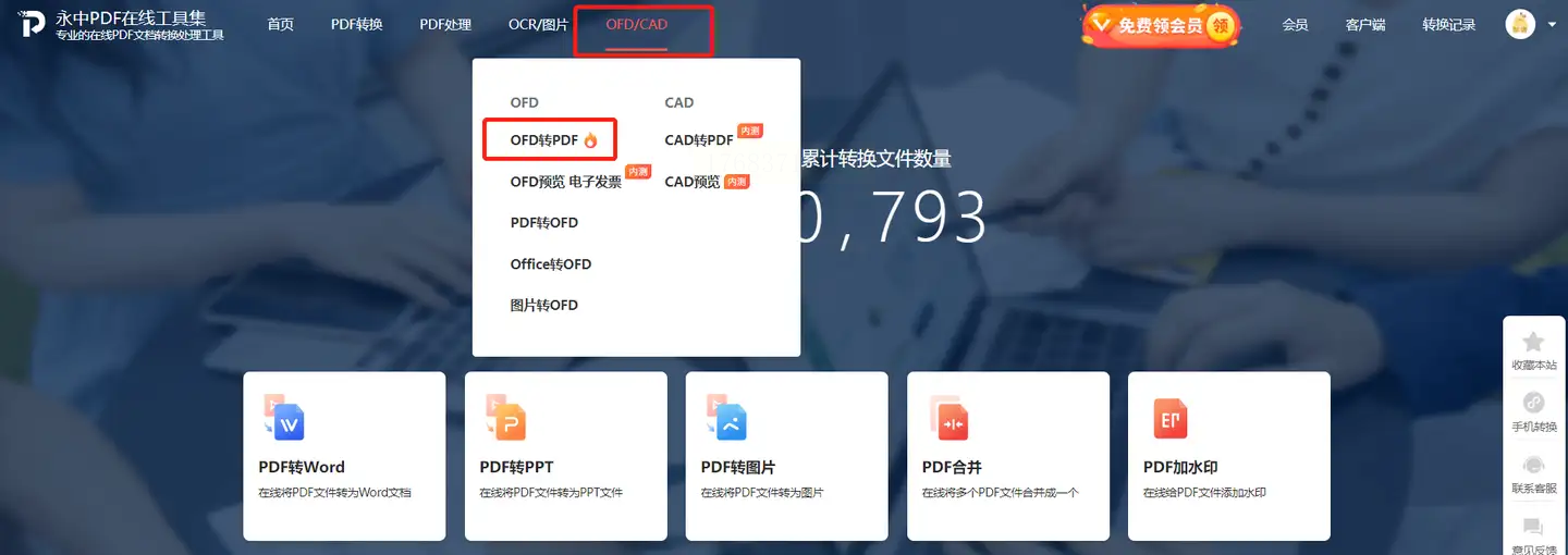 步骤一:使用浏览器访问永中软件的在线PDF工具平台。在页面上找到“OFD转PDF”的图标或链接并点击。