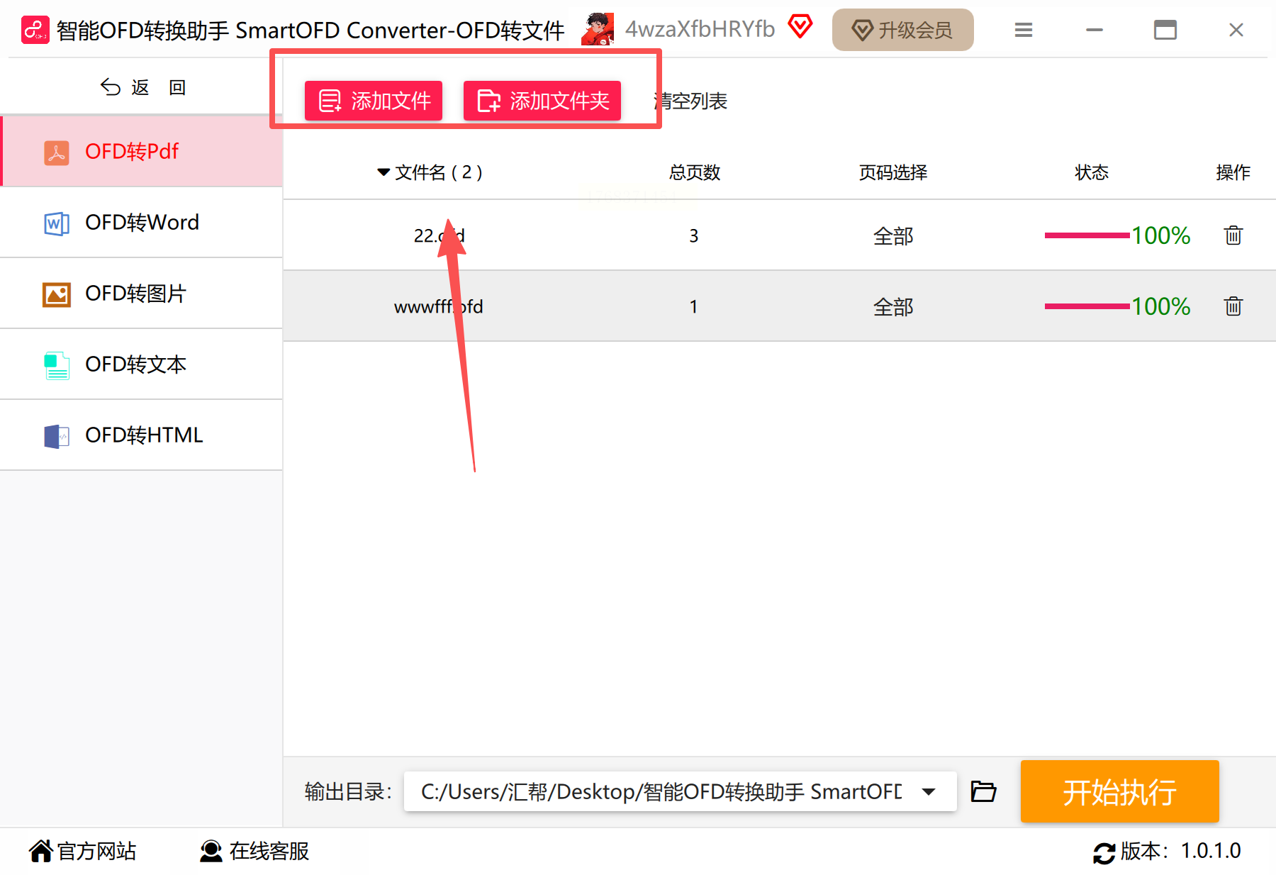 步骤二:通过“添加文件”或“添加文件夹”的方式,将成批的OFD文档导入到转换列表中,操作效率很高。