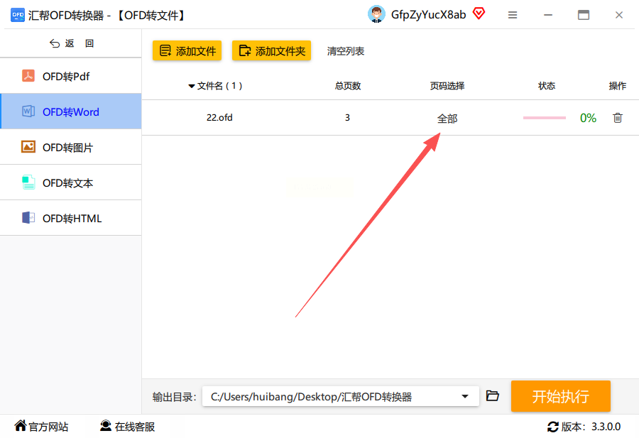 启动汇帮OFD转换器后,在主界面左侧功能区找到"OFD转文件"选项,点击进入转换界面。这个界面会显示多种转换格式,包括PDF、Word、图片等,直接选择"OFD转Word"即可。