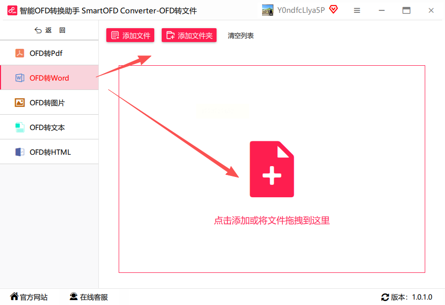 点击"添加文件"导入OFD文件,支持文件夹批量导入。