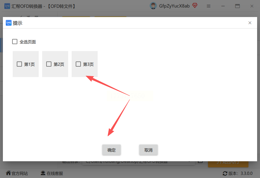 文件导入后,系统会弹出页码选择窗口。