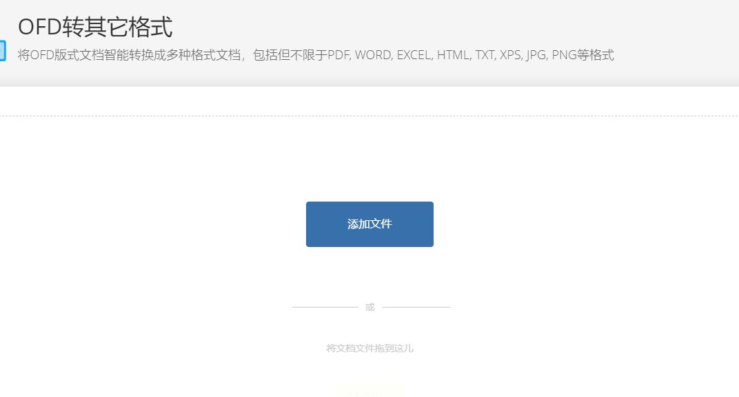 页面中间有个"添加文件",点它选OFD文件,或者直接拖进去。