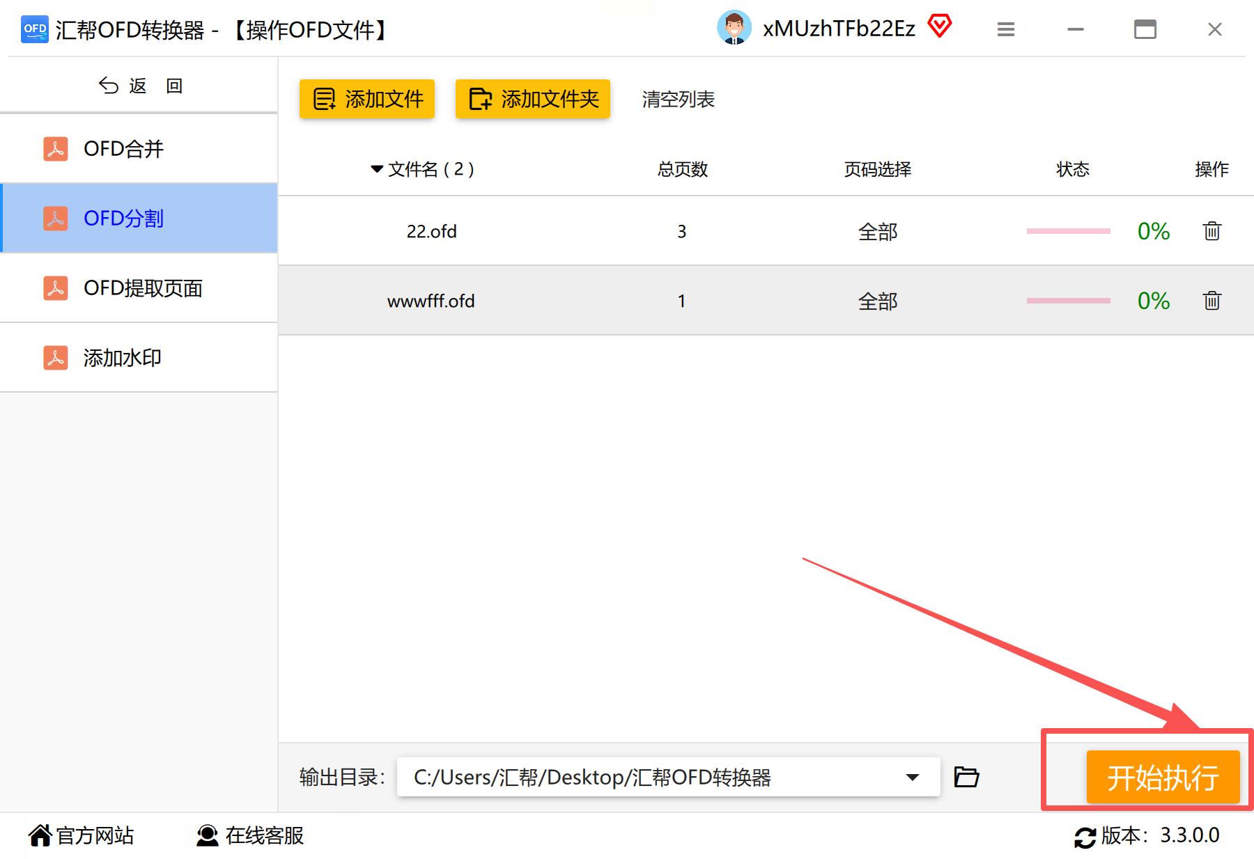 2. 批量导入文件:点击“添加文件夹”按钮,可一次性导入多个OFD文件进行批量分割。