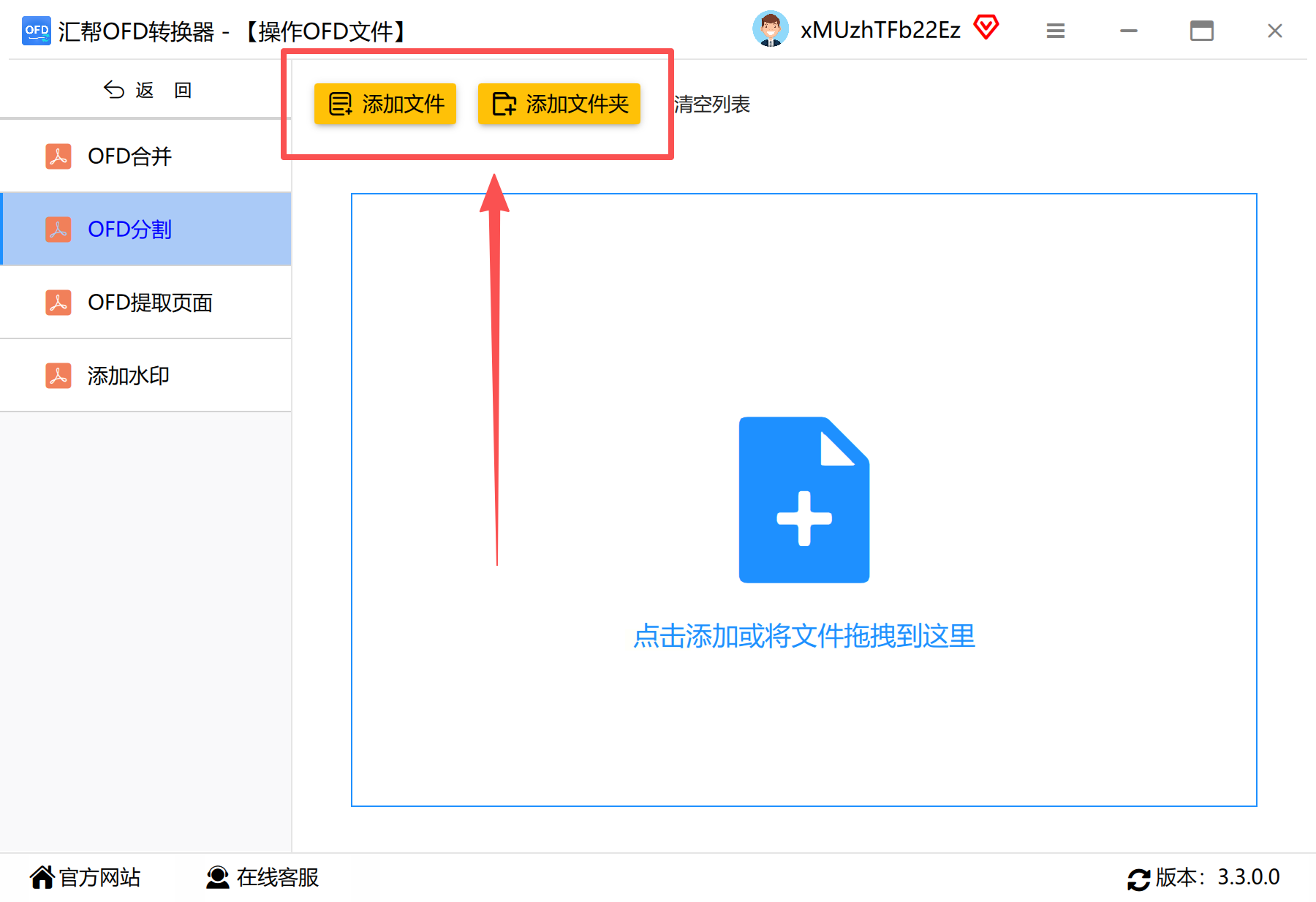 3. 添加待处理文件:点击“添加文件”按钮,或直接将OFD文件拖拽至操作区,支持批量导入多个文件。