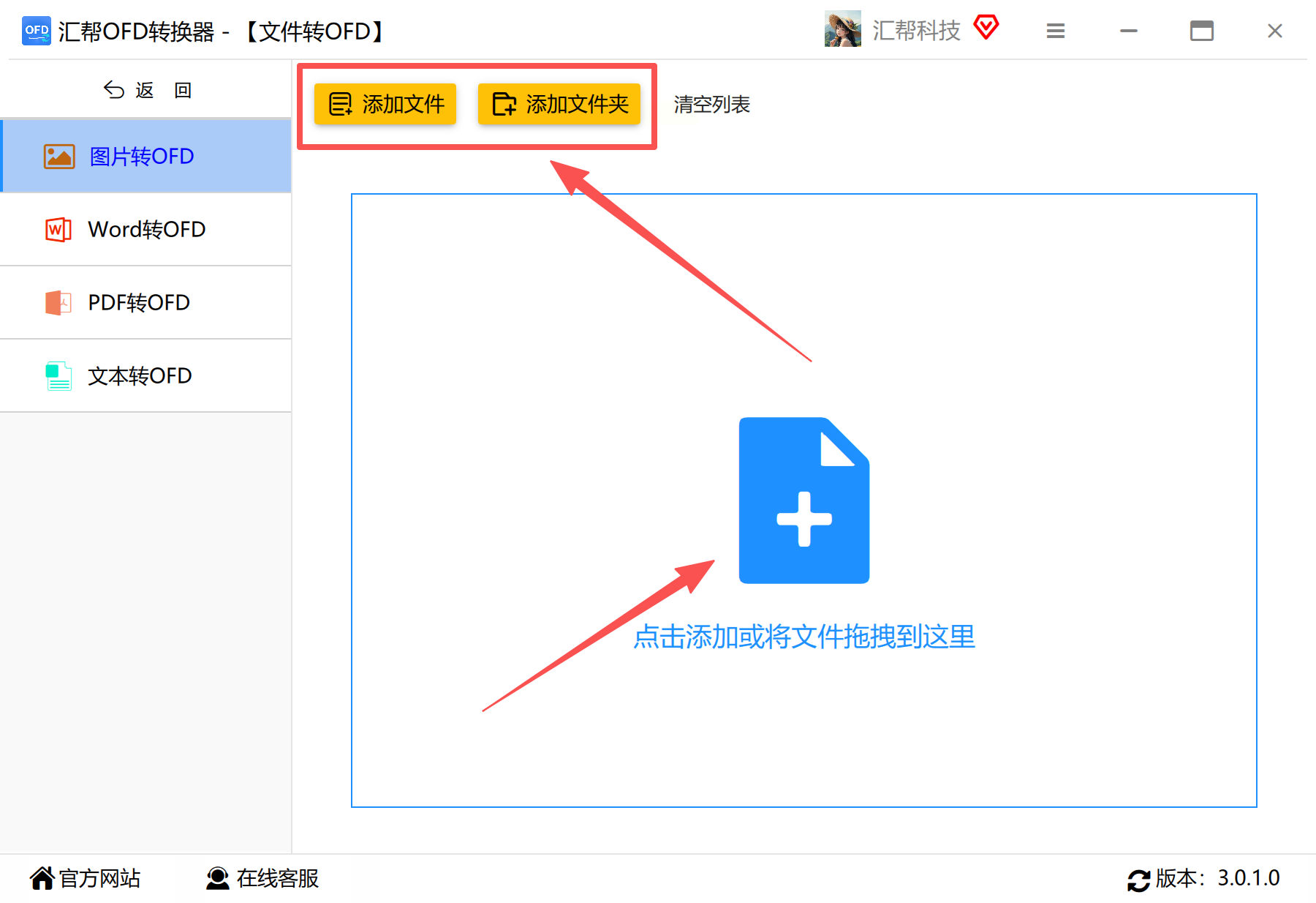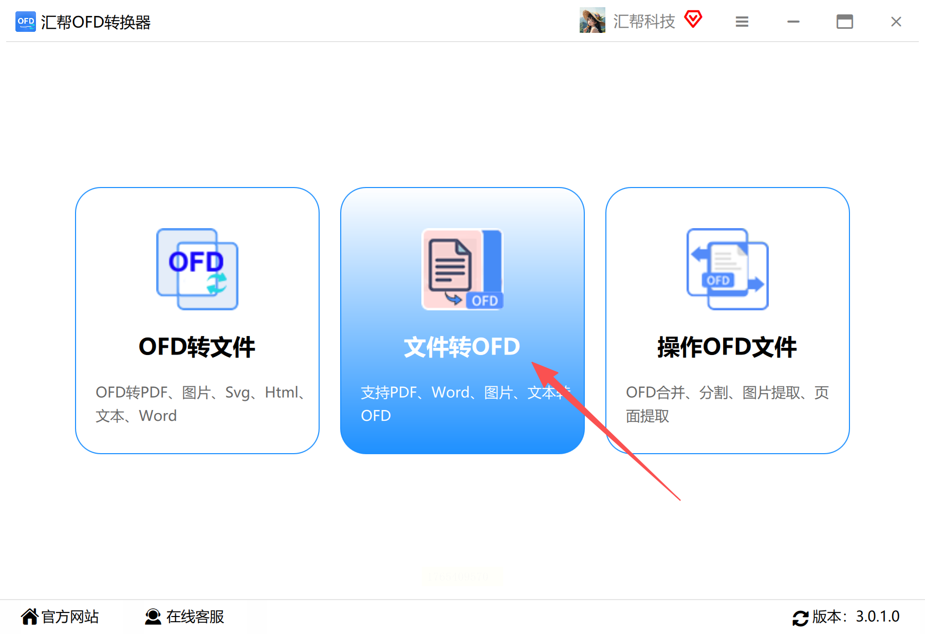 1. 首先,当然是在电脑上打开《汇帮OFD转换器》软件。一进去就能看到很清晰的界面,找到那个“文件转OFD”的选项,点它进去。