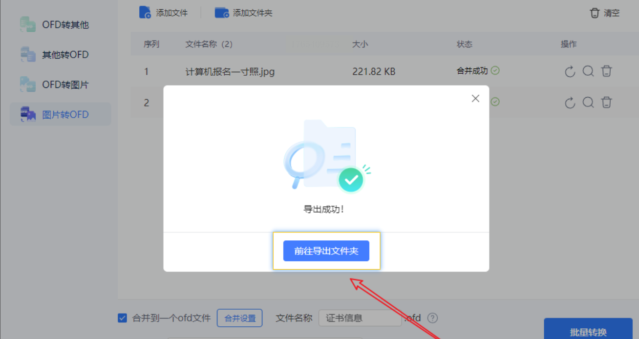 3. 上传后会自动转换,稍等一会儿,转换完成就可以下载OFD文件了。