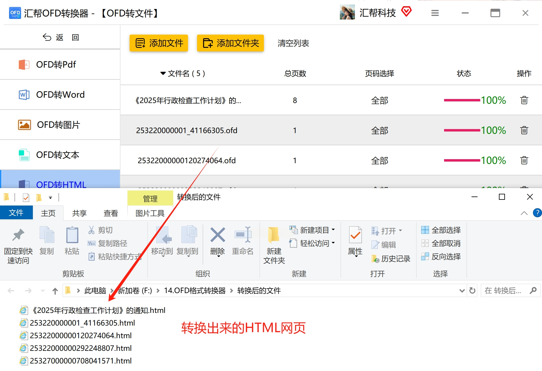 ofd转html方法1:用“汇帮OFD转换器”软件,本地操作更稳定(适合批量转换)
