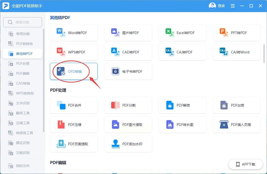 打开专业转换软件,在主界面选择“OFD转PDF”功能模块。