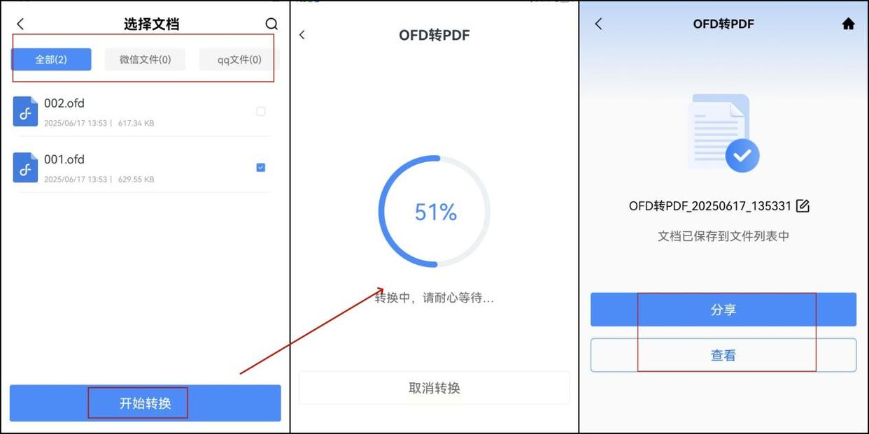 点击添加文件按钮,在弹出的窗口中找到需要转换的OFD文档。