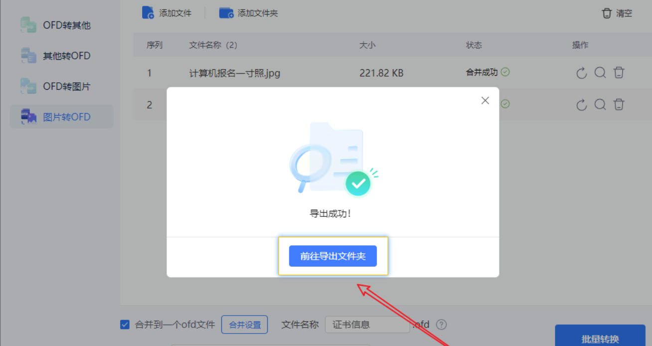 在软件底部或侧边栏,您可以设置输出方式,例如将多张图片合并为一个OFD文件,或每张图片生成独立OFD。同时,指定一个本地文件夹作为输出目录,便于后续查找。