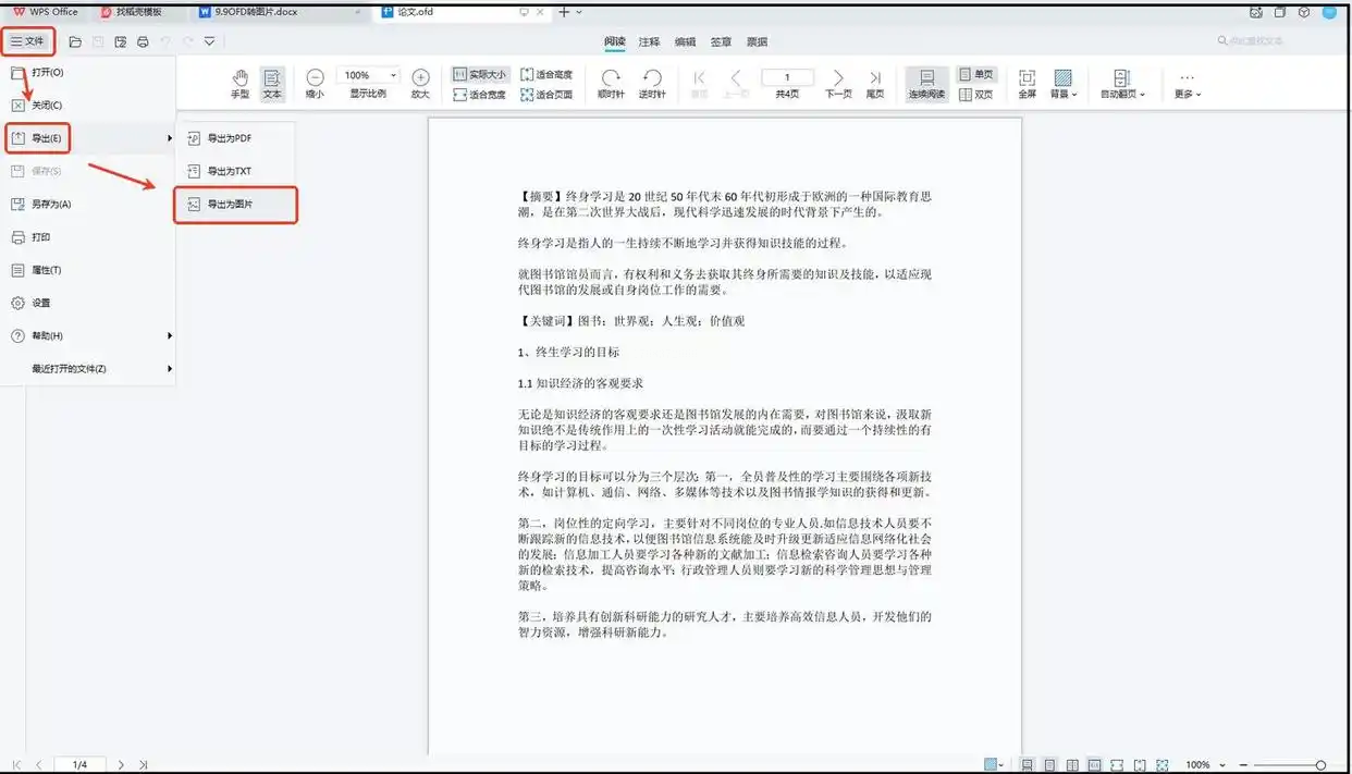 文件打开后,点击顶部菜单栏的“文件”选项,在下拉菜单中找到“导出为图片”。这里要注意,不同版本WPS可能位置略有不同,有的版本可能在“输出PDF”下方,仔细找一下就能看到。