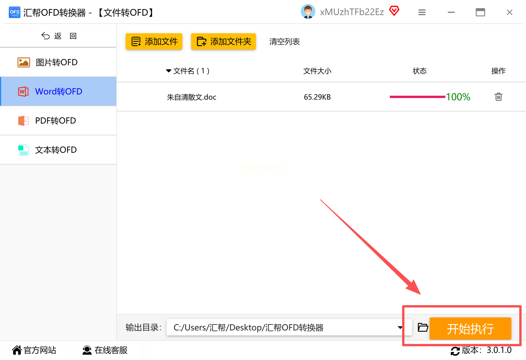 4. 在右侧参数设置区,确认输出格式为"OFD版式文档"