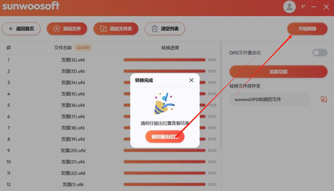 软件会自动扫描文件夹里的所有OFD文档,并在列表中显示出来。如果里面混入了几个不需要转换的文件,你可以在列表里取消勾选,这个设计真的很贴心。