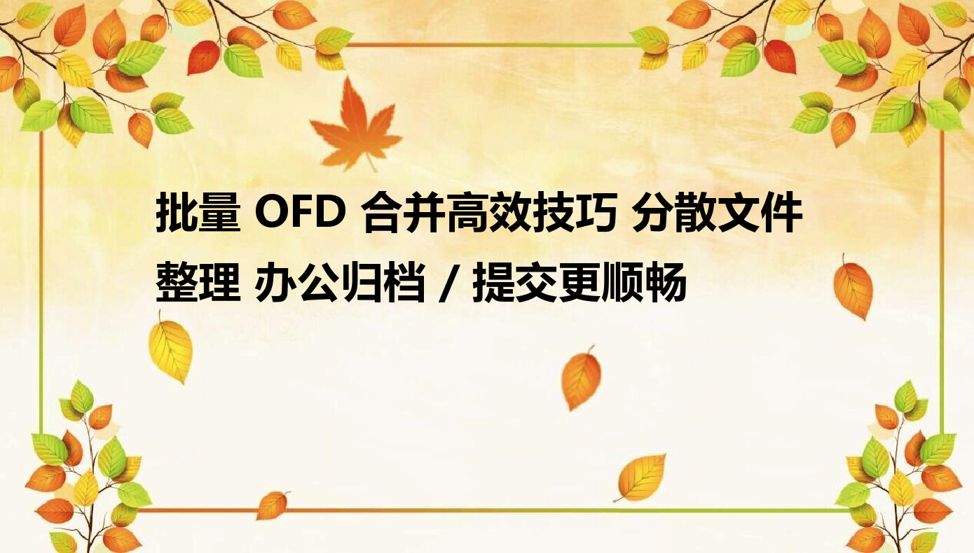 在日常办公和学习中,我们经常会接触到OFD格式的文件,比如电子发票、政务公文或者各类报告。这些文件往往分散存在,管理和查阅起来很不方便。想象一下,当你要提交一整套材料,或者需要将多个章节的文档整合成一份完整的文件时,如果能把它们合并成一个OFD文档,那么无论是保存、发送还是打印,效率都会高得多。合并操作不仅能简化你的文件管理流程,还能确保原始文件的排版、签章等关键信息完整无损地保留下来。本文将详细介绍几种合并OFD文件的方法,从专业的本地软件到便捷的在线工具,涵盖不同场景下的需求。我们会一步步讲解操作过程,即便你是第一次处理OFD文件,也能轻松跟上。让我们直接开始,看看如何让分散的文件变得井井有条。
