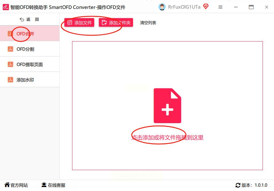 2. 导入文件:点击界面中的“添加文件”按钮,可以单个或批量选择OFD文件;如果文件分散在不同文件夹,直接点击“添加文件夹”即可一次性导入整个文件夹内的所有OFD文件。