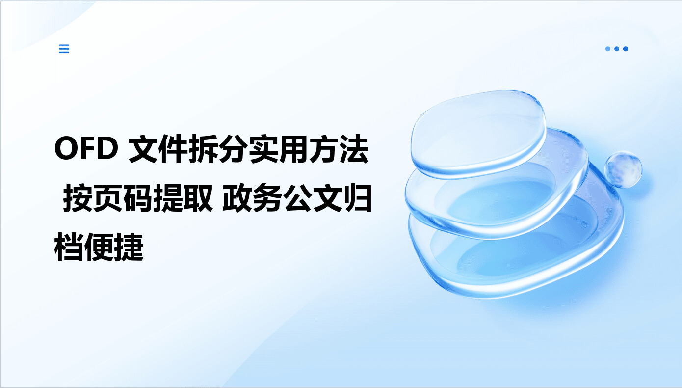 在日常办公中,我们常常会遇到OFD格式的文件。这种格式在政务公文、电子合同、档案存储等领域应用非常广泛。不过,一个现实的问题也随之而来:当一份OFD文档动辄几十页甚至上百页时,查阅、归档或者只发送其中某一部分给别人,就变得很不方便。直接传输整个大文件,耗时耗力;手动截图或者重新编辑,更是费时且容易出错。因此,掌握如何高效、准确地将一个庞大的OFD文件按照需求进行拆分,就成了提升办公效率的一个关键技能。