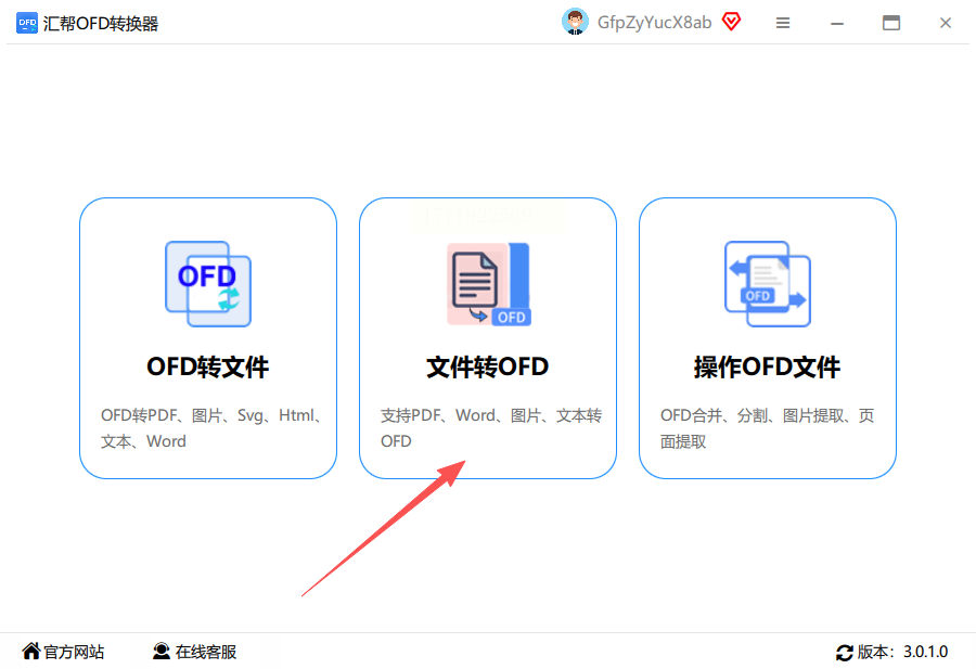 1. 打开汇帮OFD转换器,在主界面左侧功能栏选择“文件转OFD”。