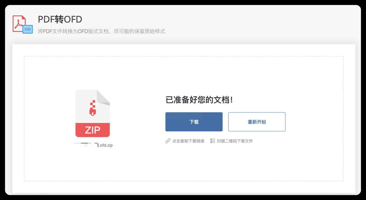 4. 转换完成后直接点击“下载”按钮保存OFD文件