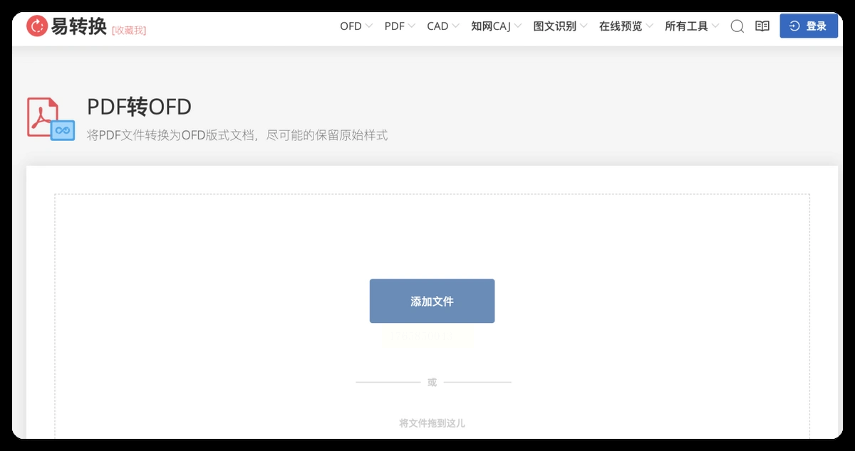 1. 浏览器打开易转换官网,进入“PDF转OFD”功能页面