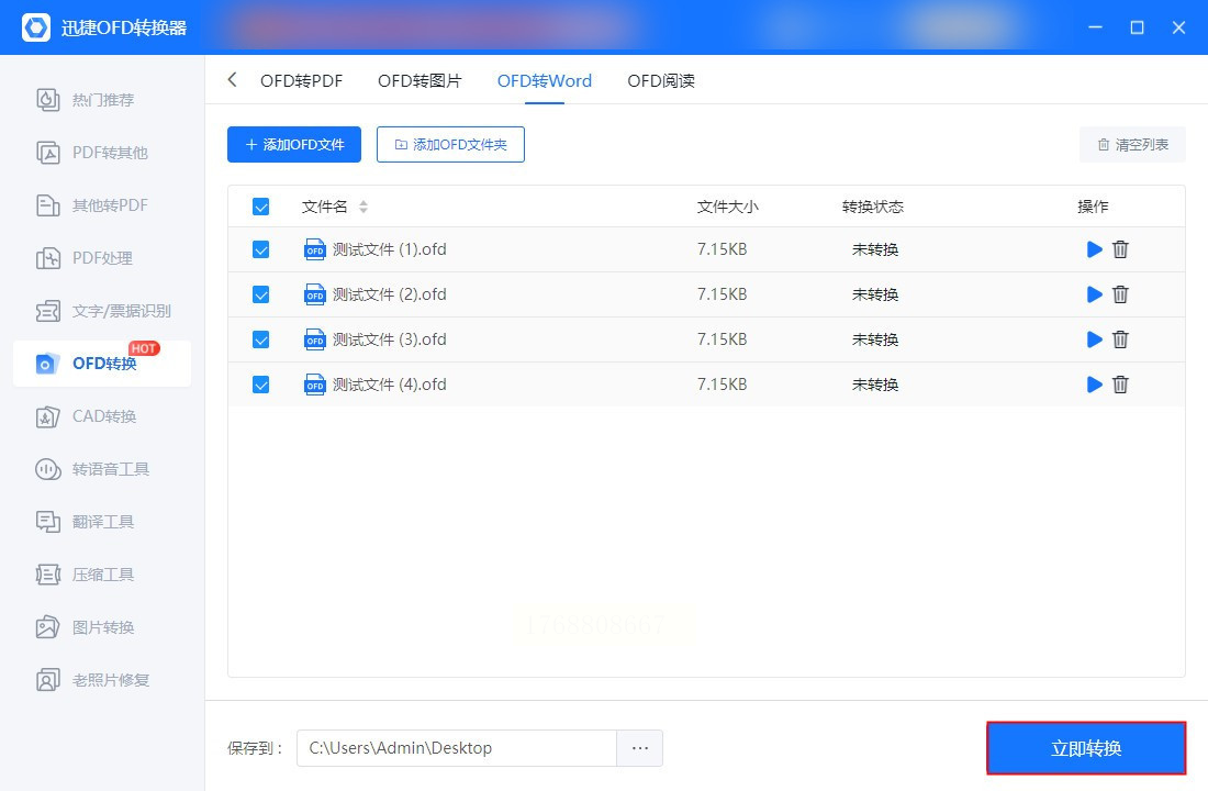 步骤一:启动软件后,在主界面找到“文件转换”模块,选择“OFD转Word”选项。
