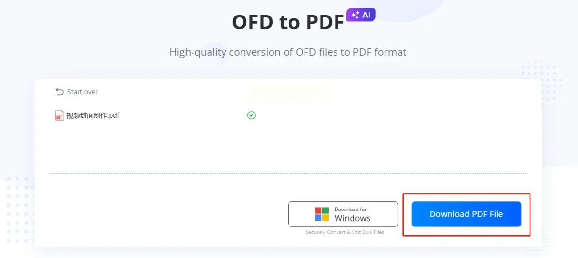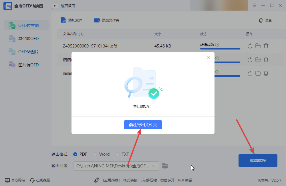 通过点击“添加文件”或将文件直接拖入工作区,导入你的OFD文档。接着,在输出格式的选项中,明确选择“PDF”作为目标格式。