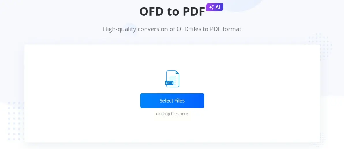 点击界面中央的“添加文件”区域(可能显示为“Drop files here”)。从弹出的窗口中选择你要处理的OFD文件,即可完成上传。