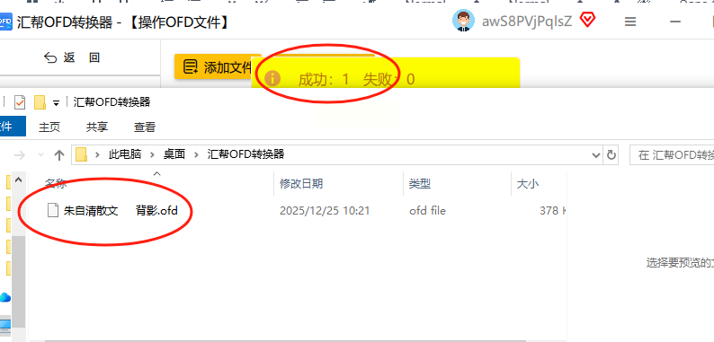 4. 如果一切顺利,命令行里会显示“文件分割成功!”,你指定的输出位置就会生成新的OFD文件。