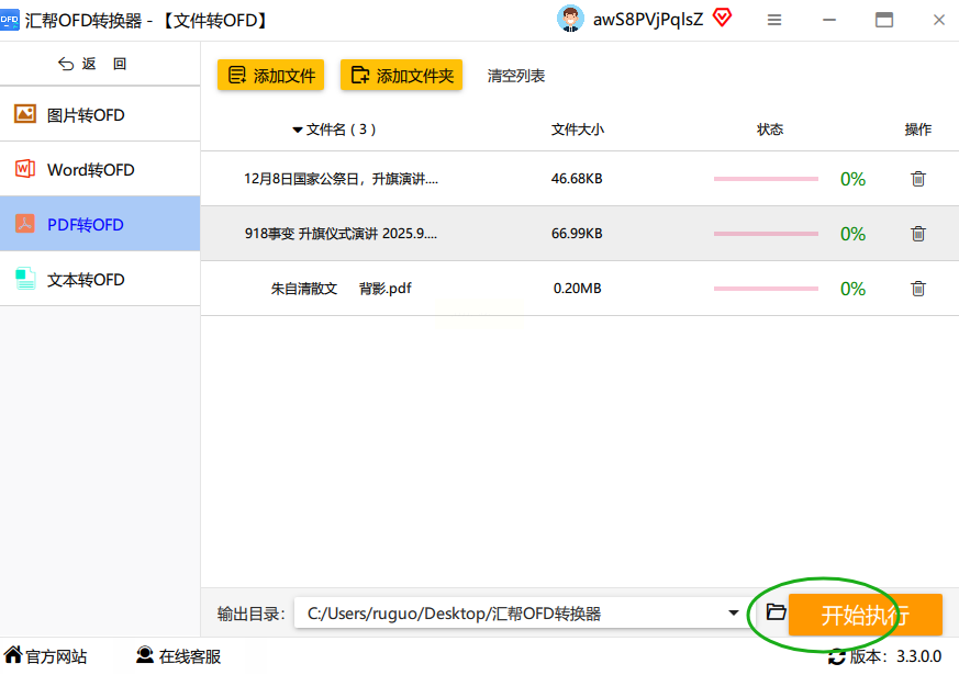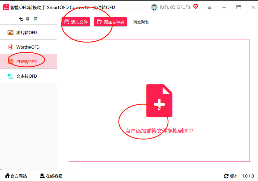2. 选择转换模式:左边会显示几个转换选项,确保选的是“PDF转OFD”(一般默认就是这个,不用特意改)。然后右边有个“添加文件”按钮,点它就能选你要转换的PDF文件了。或者更方便的是,直接把PDF文件拖到软件窗口里,多个文件也能一起拖,超实用!
