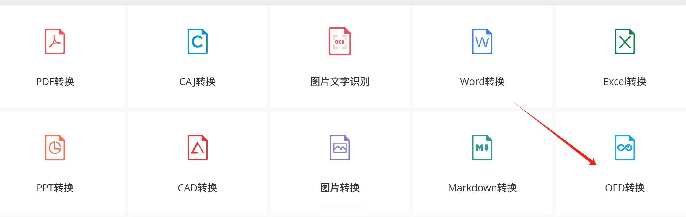 3. 选择"OFD转文件"功能,进入转换设置页面