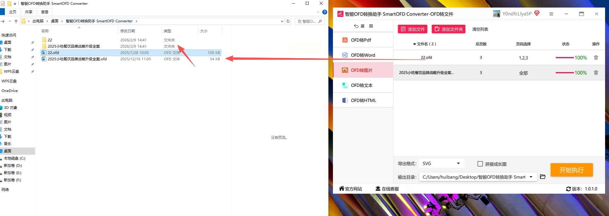 步骤八:最后,检查一下前面的设置都没问题,然后点击那个大大的“开始执行”按钮。软件就会自动处理了。转换完成后,你就能在刚才设置的文件夹里找到新的SVG文件。原来的OFD文件会原封不动地保留,不用担心被覆盖。