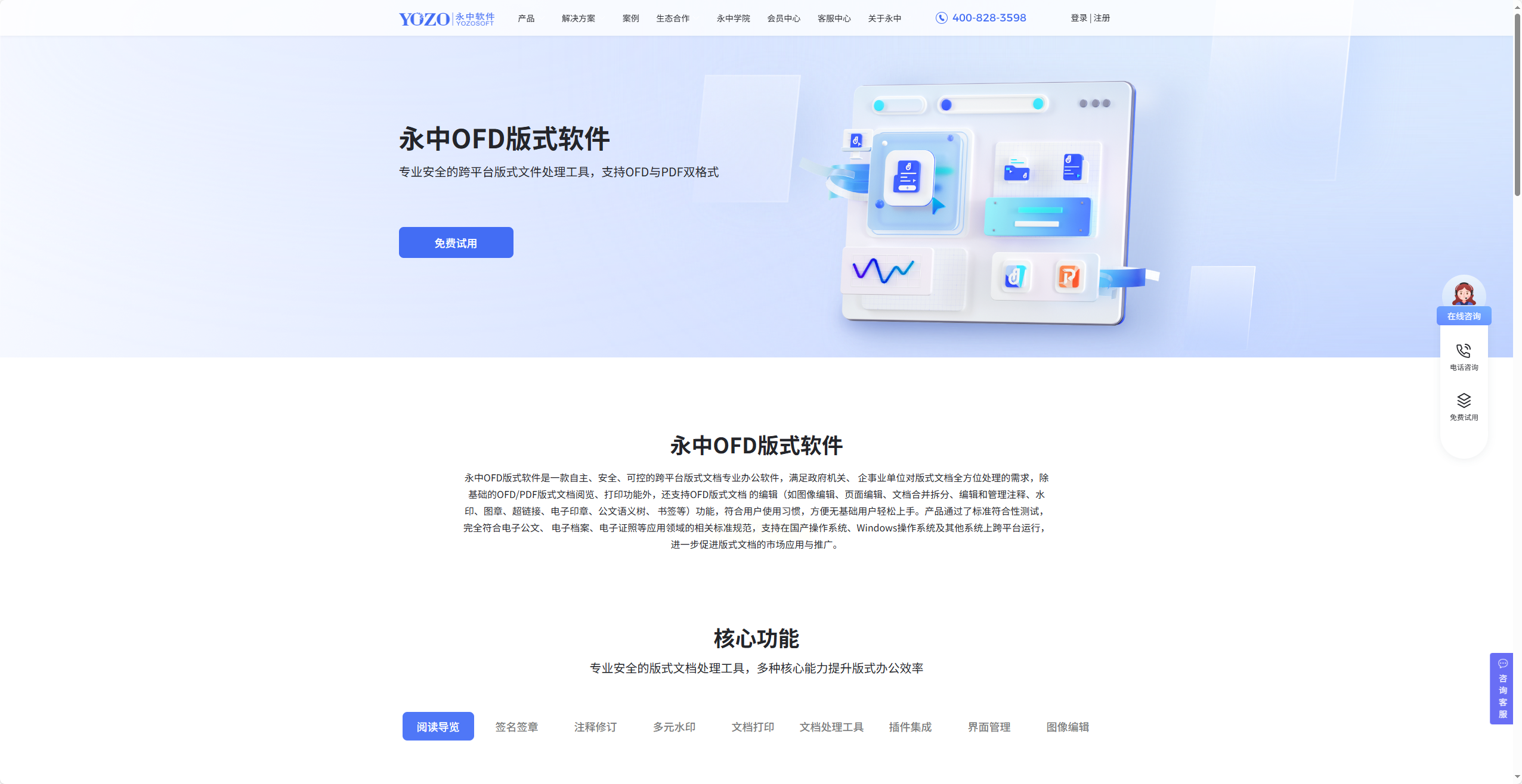 1. 打开永中软件,导入需合并的OFD文件。