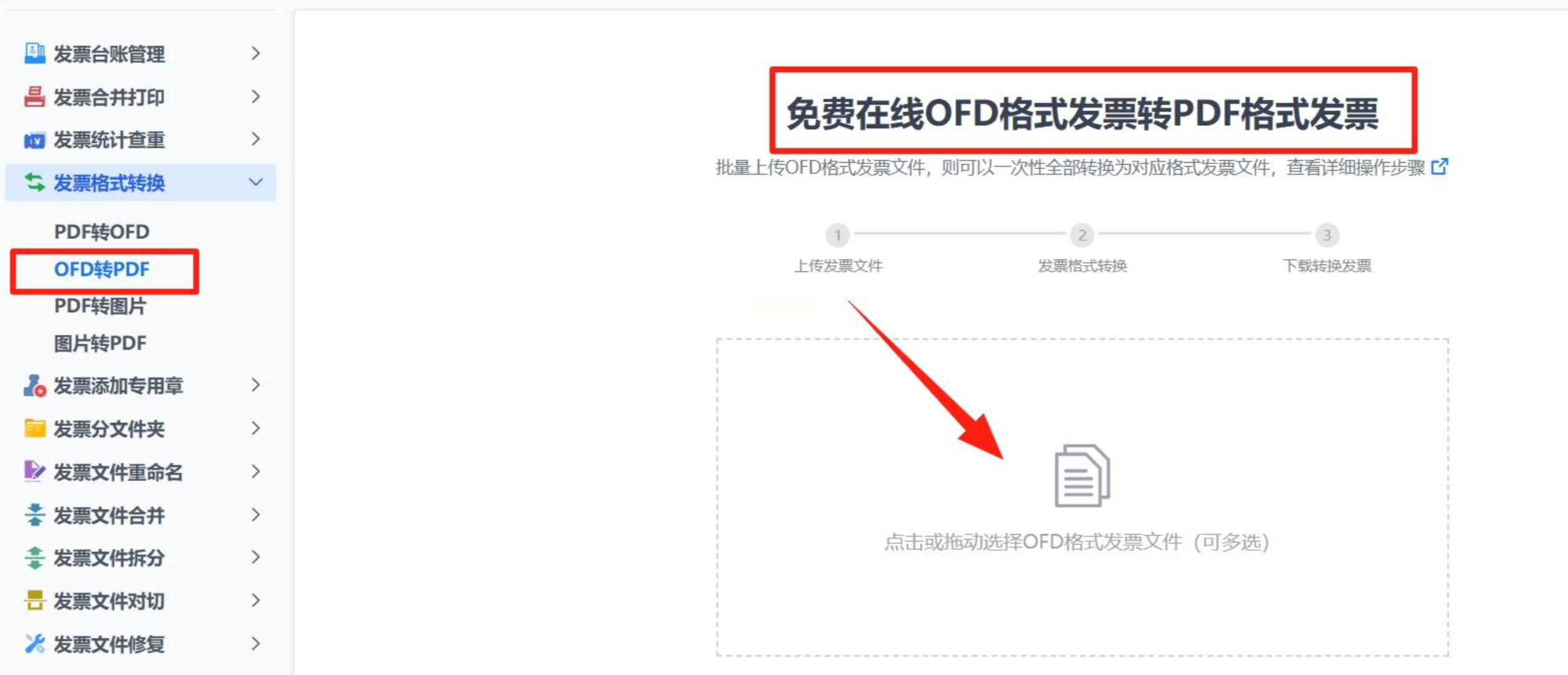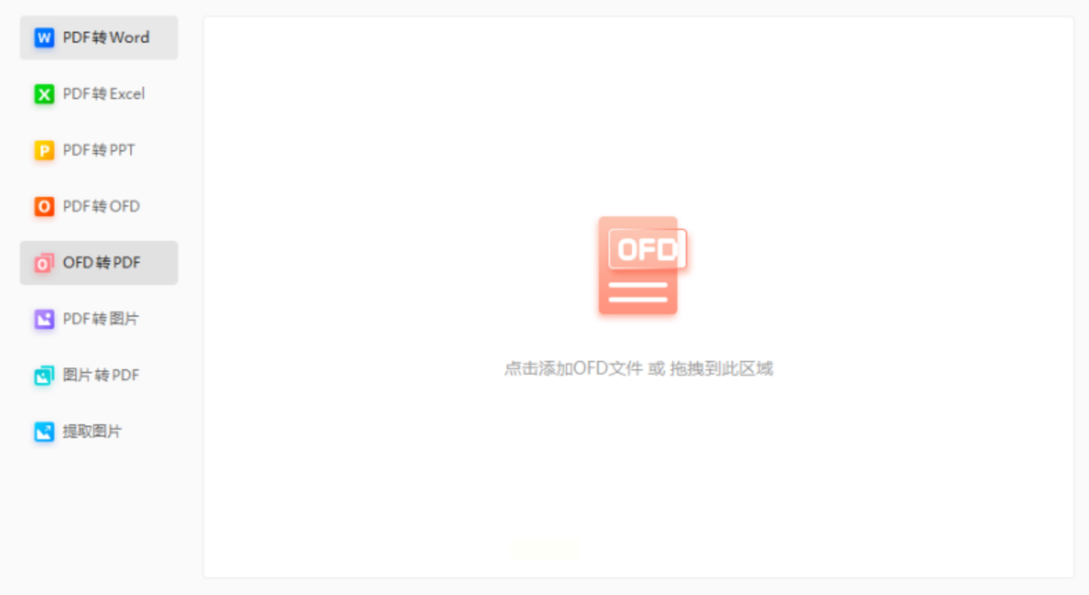 3. 选择“OFD转PDF”的功能选项,点击进入上传页面。