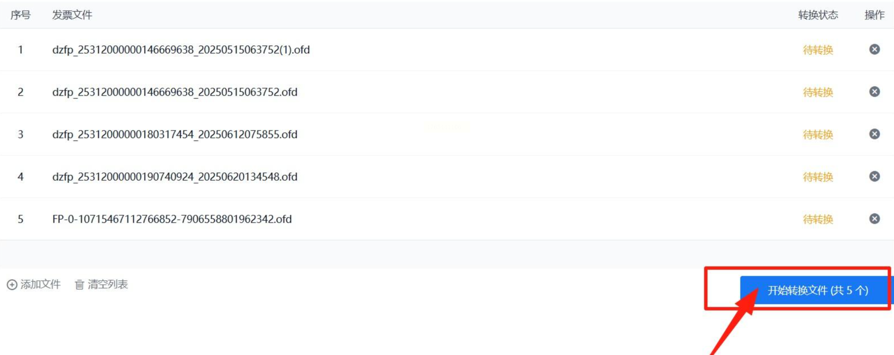 4. 然后点击“导入文件”按钮,把需要转换的OFD文件上传。可以一次选多个文件,支持批量转换。