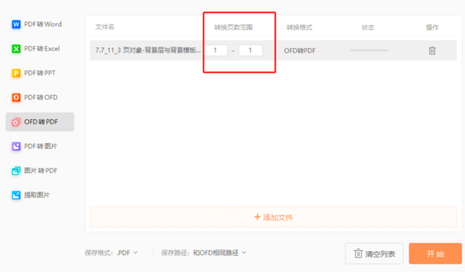 - 如果只转换单个文件,点“添加文件”,在电脑里找到目标OFD文件选中就行。