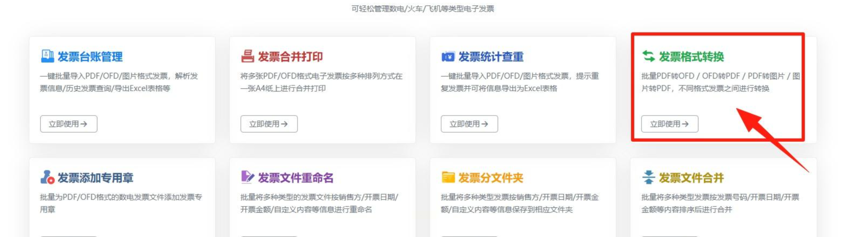 2. 进入后,找到“发票格式转换”的入口,一般在首页就能看到。