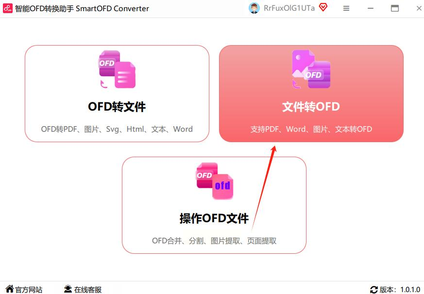 2. 选择「Word转OFD」功能,点击「选择文件」