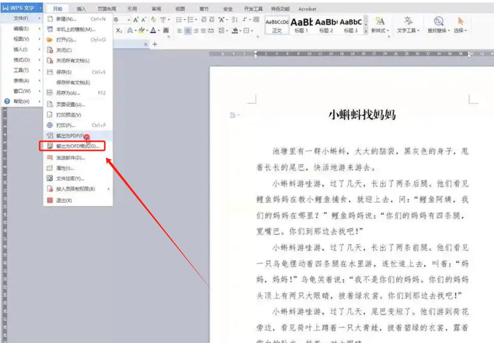 2. 点击顶部菜单栏「文件」→「输出为OFD格式」