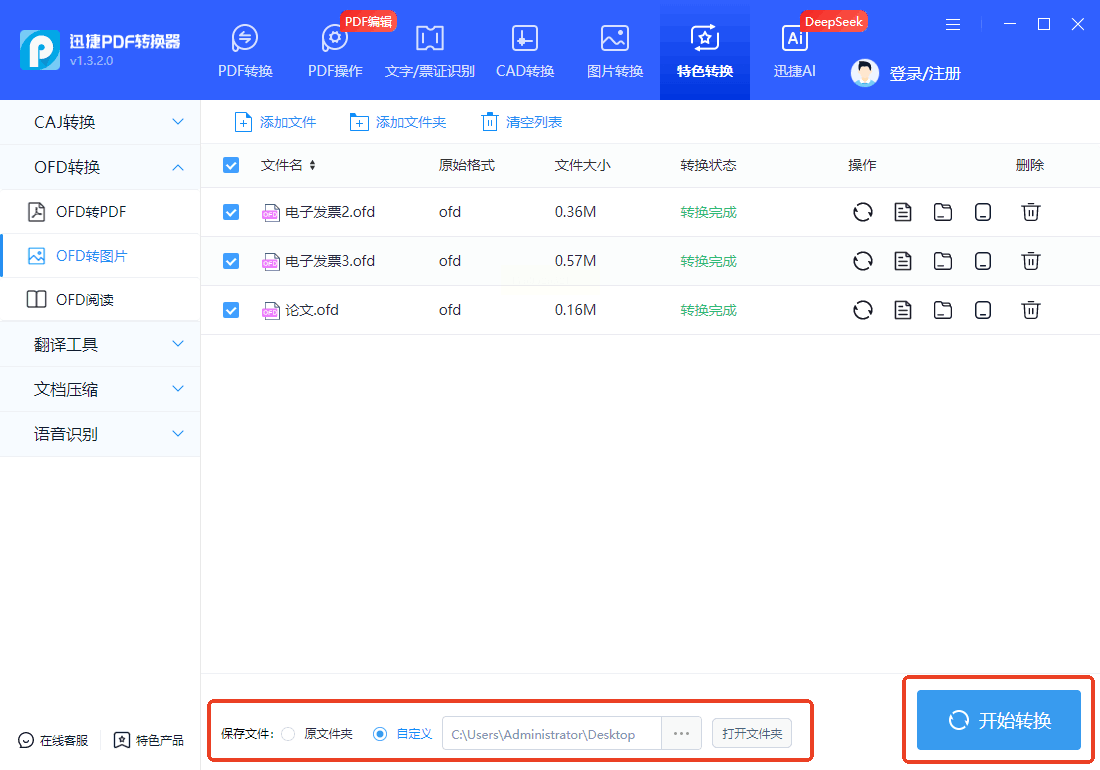 步骤二:在软件首页,找到“特色转换”区域,然后选择“ofd转换”下的“ofd转图片”功能。