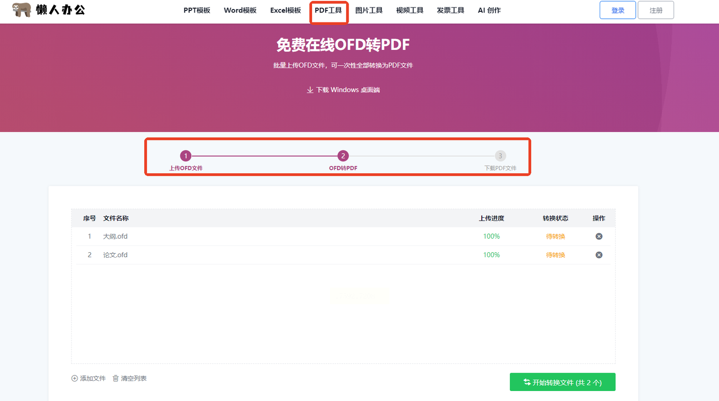 这是一个多功能办公资源网站,提供各类文档处理工具。进入平台后,找到PDF工具专区,选择OFD转PDF功能。上传需要转换的文件,支持批量操作。点击开始转换,系统会提示扫码登录。转换过程在云端完成,不占用本地资源。该方法适合注重隐私保护的用户,文件处理完成后自动生成下载链接。