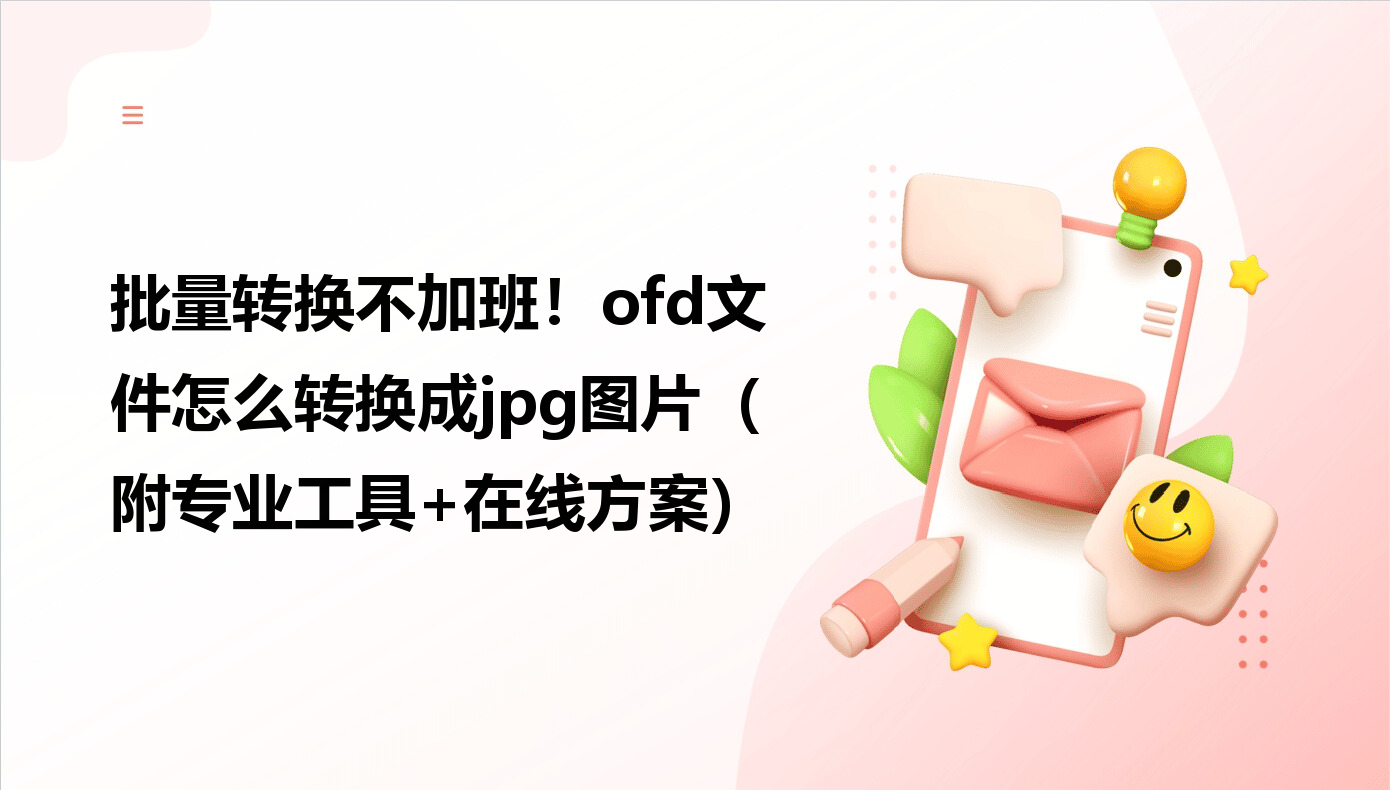 在数字化办公场景中,OFD(版式文档)作为国产标准格式,在电子发票、政务公文等领域的应用日益广泛。当我们需要将OFD文件插入PPT演示、上传至协作平台或分享给非专业用户时,转换为通用性更强的JPG图片格式往往能显著提升效率。本文基于用户常见搜索需求(如"ofd怎么转jpg"、"免费OFD转图片工具"等),结合办公场景的多样化需求,从专业软件到在线工具,从电脑端到移动端,详细拆解6种转换方法,帮助不同技术水平的用户快速掌握操作技巧。