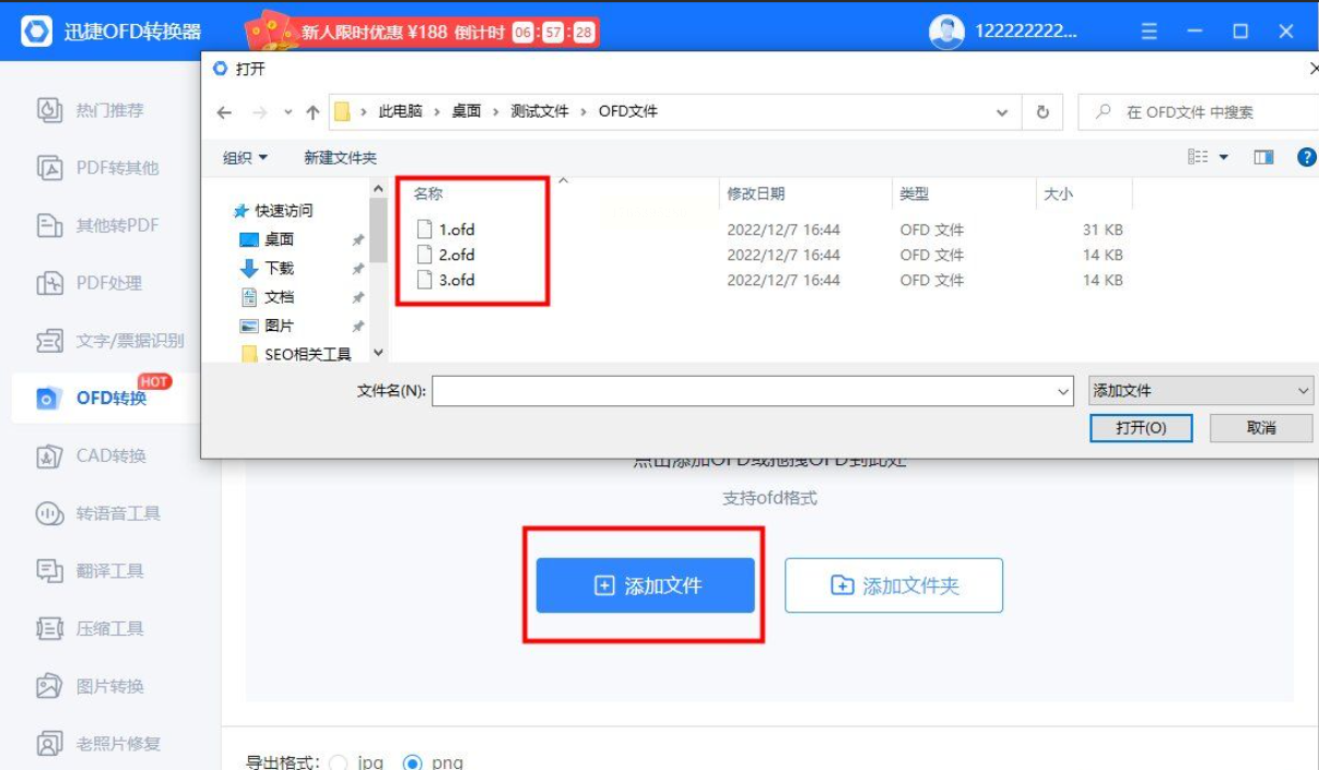 进入操作界面后,左侧是功能列表。在这里找到并点击“OFD提取页面”这个选项。同时,在右侧区域,点击上传按钮,将你需要处理的OFD文件添加进来。这个软件支持一次性批量上传多个文件,方便你统一处理。
