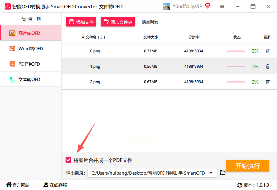 3. 下方有个“合并为一个OFD”的选项,勾选后会把所有图片合成一个文件,灵活适配图片转ofd格式的不同需求;